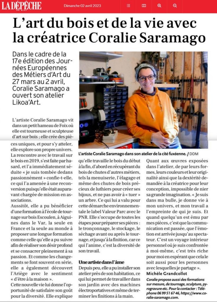 Article de LA DEPECHE du Midi, Ariège, Foix, 2/04/2023