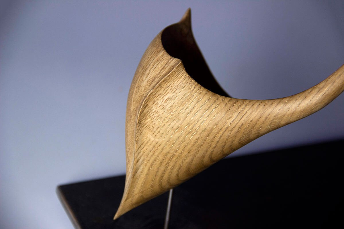 vue de profil de la sculpture tournée et cintrée "Graine de vie" une création originale de Coralie Saramago